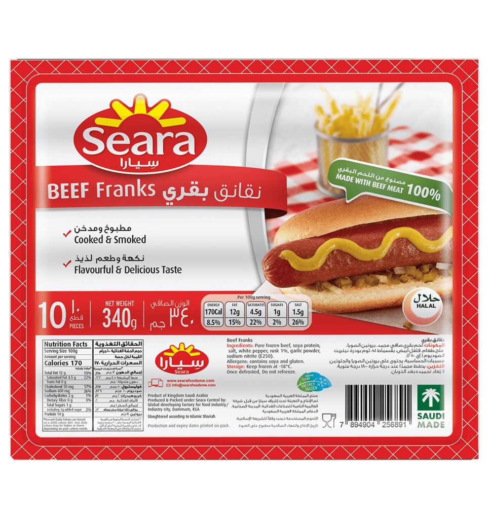 Seara Frozen Beef Frank 340Gm